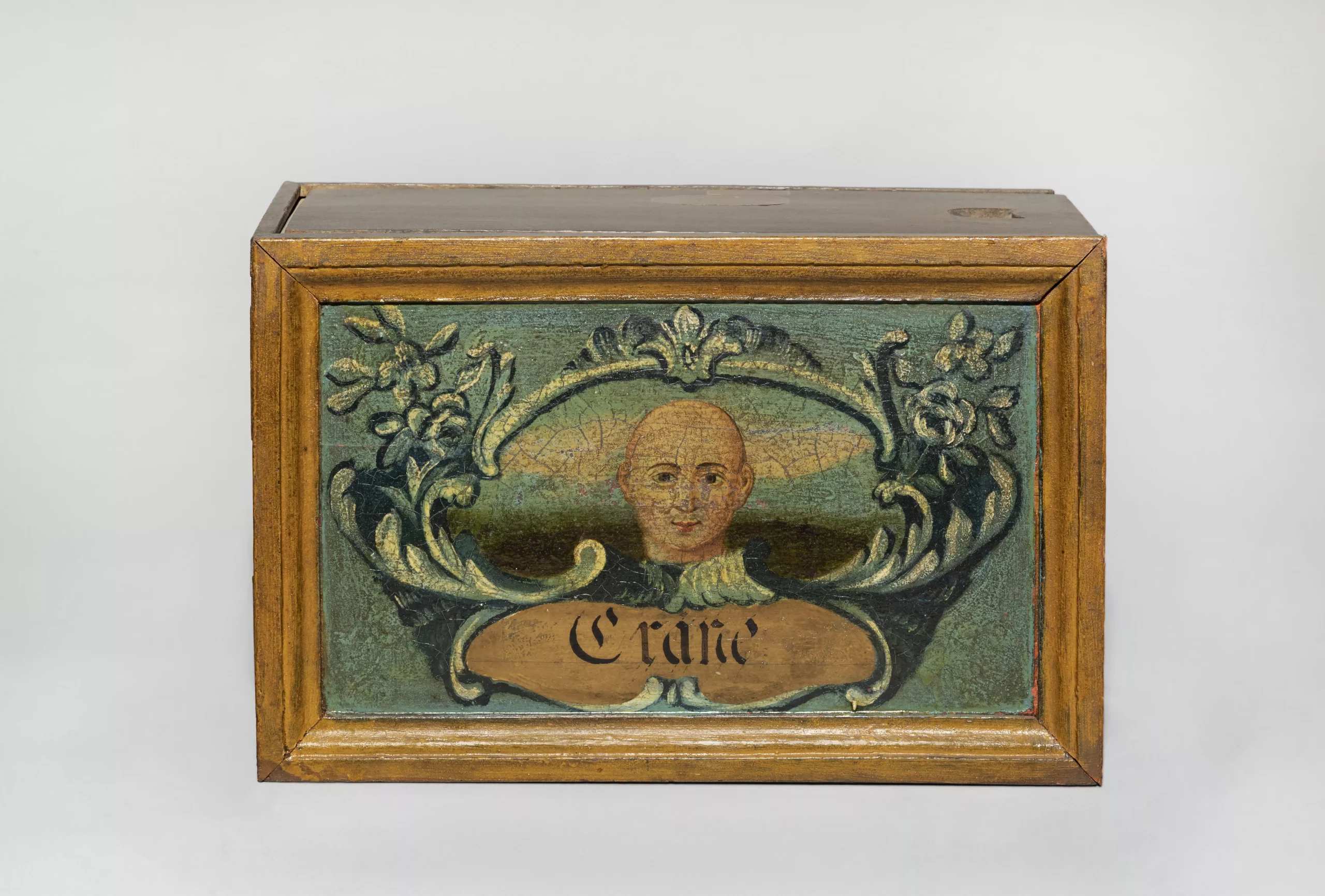 La plupart des boîtes sont parallélépipédiques, les autres cylindriques. Sur les premières, un cartouche annonce le nom de la plante ou du produit contenu, en grande majorité des plantes médicinales ou « simples », dans un encadrement de volutes et de fleurs. Ces illustrations proviennent d’un ouvrage, l’Histoire des Drogues, réputé à l’époque, publié en 1695 par un marchand-droguiste parisien, Pierre Pomet.