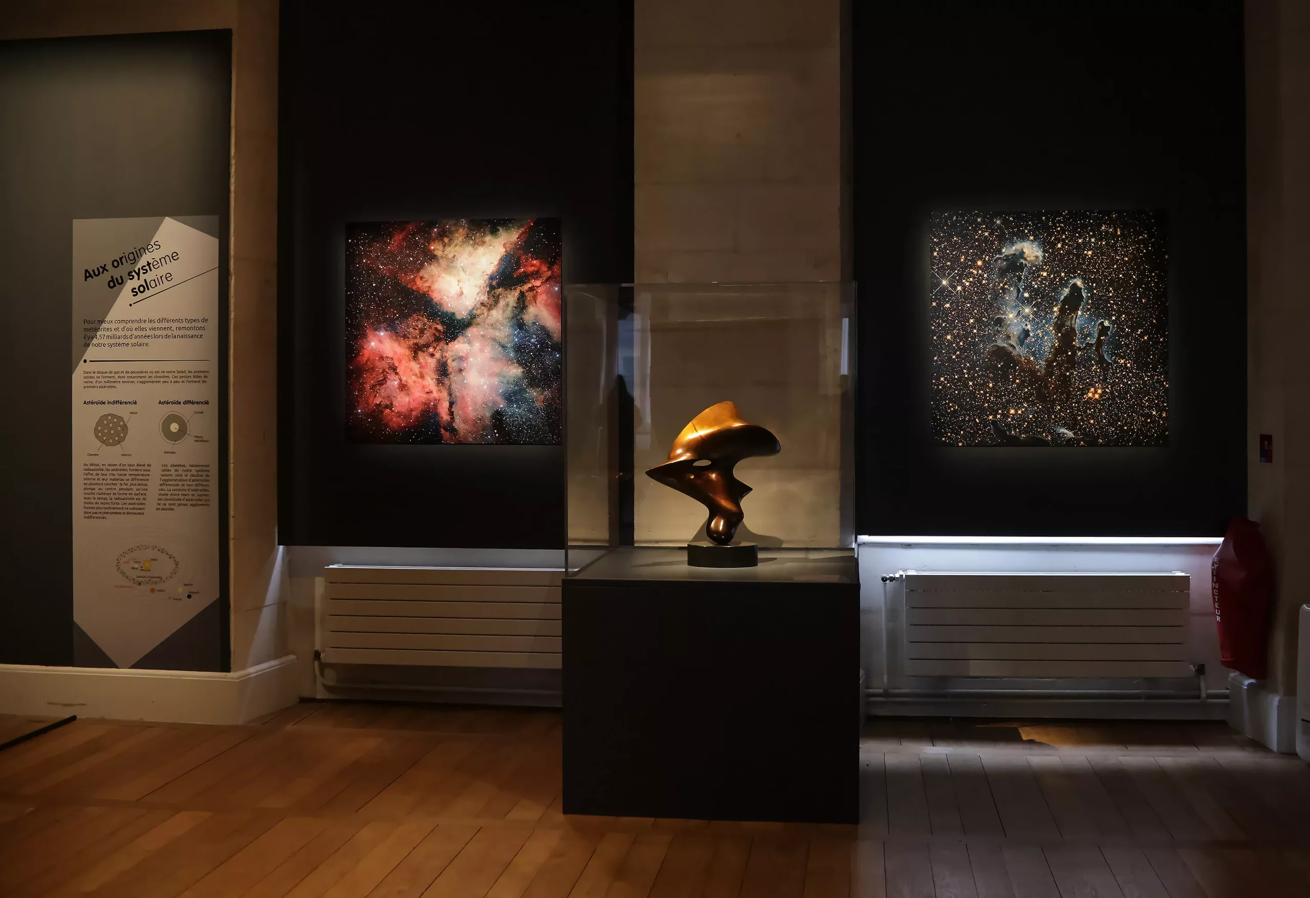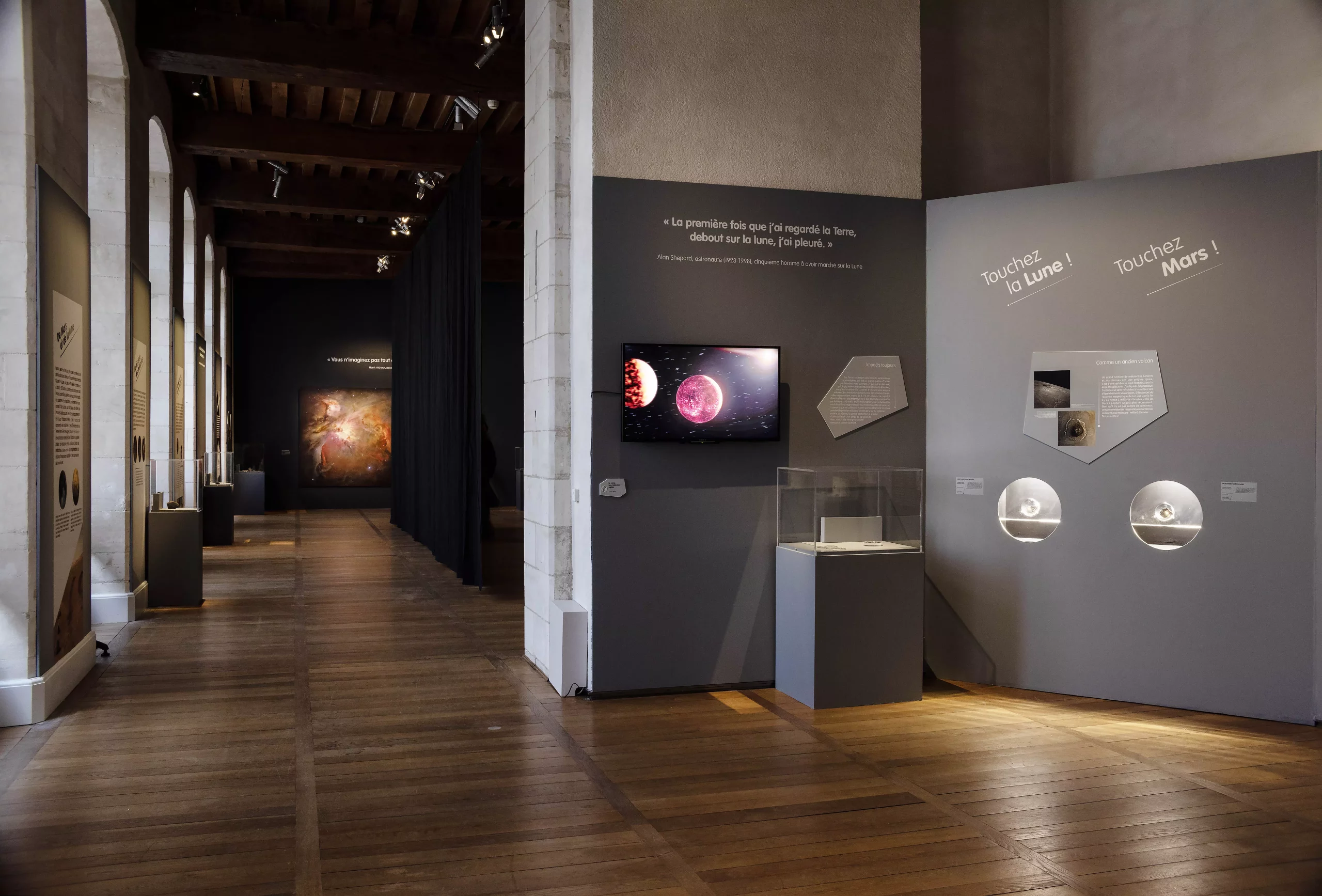 L’exposition laisse également une place à l’art contemporain, en donnant à voir des œuvres de collections privées ainsi que de Fonds régionaux d’Art contemporain, inspirées par ces pierres venues de l’espace. Et exceptionnellement, des météorites sont rendues accessibles au public ; en fin d’exposition, les visiteurs peuvent même toucher un bout de Lune et un morceau de Mars !