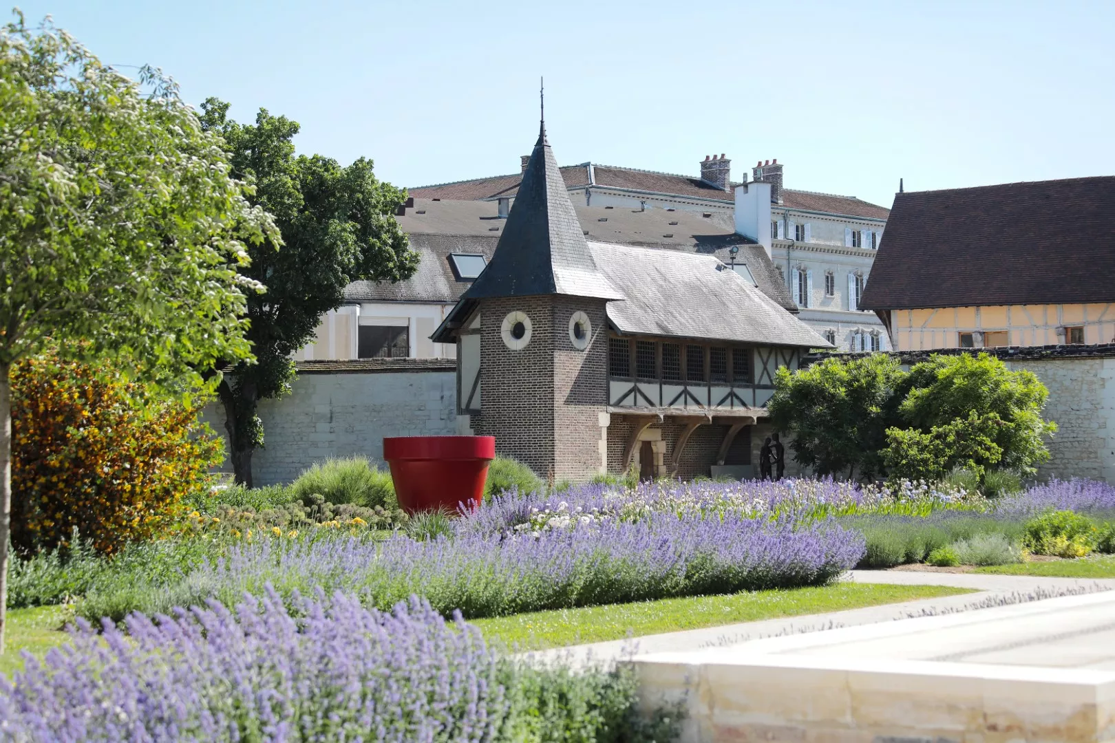 Elle a pour enjeu d’en faire un havre de verdure et de vie, où l’on peut tout autant flâner, admirer les sculptures, et se reposer qu’assister à des manifestations diverses et variées. Les paysagistes se sont inspirés du plan de l’ancien jardin épiscopal, organisé en rangées parallèles à la façade. De ce verger originel, sont conservés une treille, un cerisier et la majestueuse allée de tilleuls. Aux légumes et vignes d’antan, succèdent des arbres, arbustes et vivaces car ce jardin se veut une palette vivante en toute saison, renvoyant aux couleurs des oeuvres d’art présentées à l’intérieur du palais.